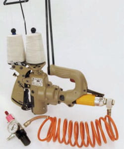 2-nitkowa pneumatyczna zaszwarka worków z silnikiem pneumatycznym do pracy w środowisku iskro-zapalnym. Elementy robocze wykonane ze stali chromowanej odpornej na korozje. Silnik pneumatyczny 2,5 bar, zużycie powietrza 240 l/min. Obudowa z włókna węglowego. Lekka i dobrze wyważona. Przeznaczona do intensywnej pracy.
